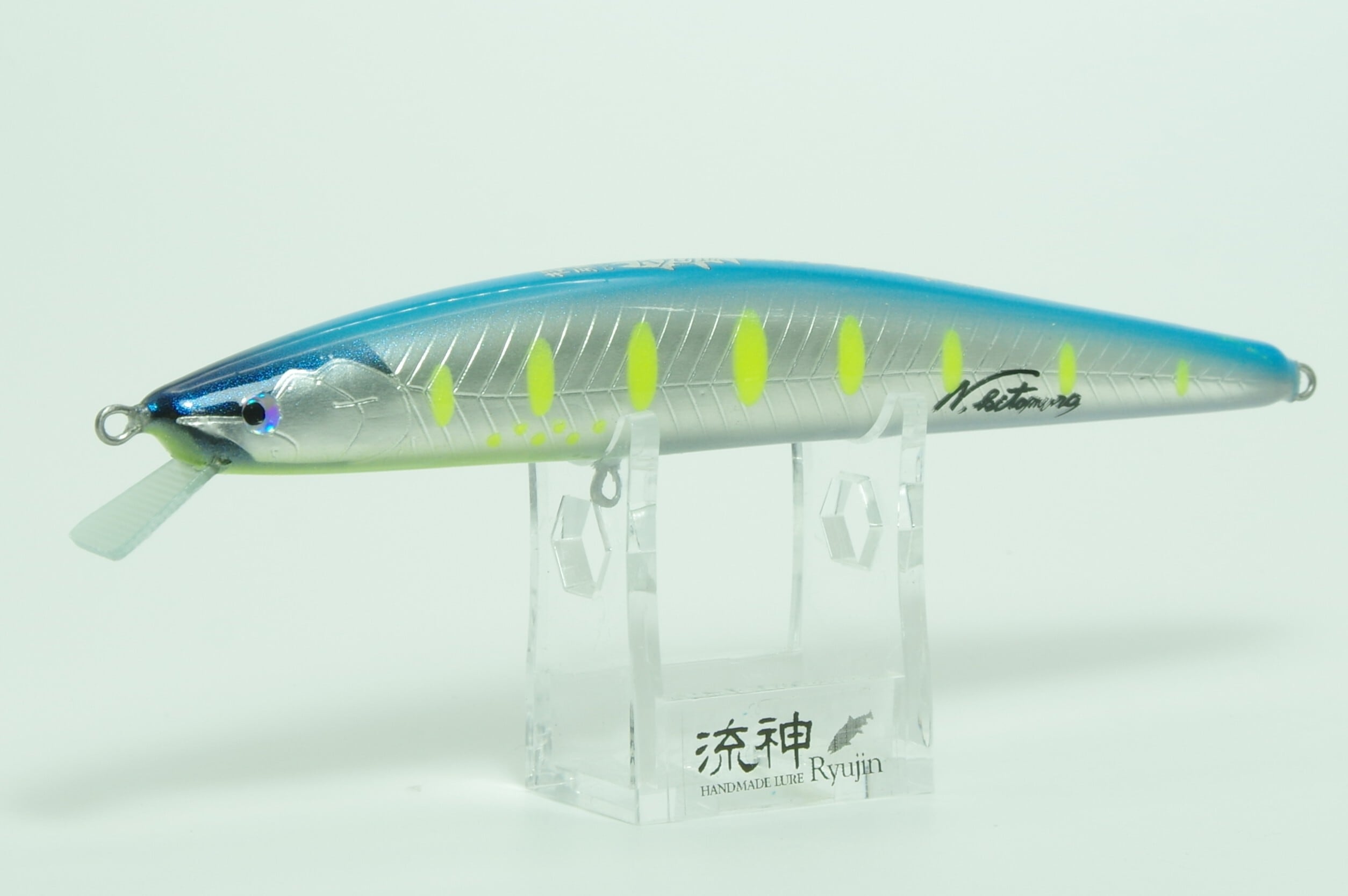 まず先にこのルアーのコンセプトを紹介すると、シャローエリアにステイするサクラマスにスイッチを入れる・・流神LUREテスターの北村氏と入念に打ち合わせを行いシャローレンジを軽快に攻略できるようセッティング