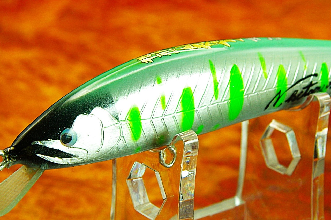 2024年新しく生まれ変わった櫻雅75F『北村スペシャル』その特徴は更なる飛距離と泳ぎの両立を目指したこと、瀬に着いたサツキマスを攻略するモデル。従来モデルからウエイトやリップの長さを変更し潜行深度を70cm 付近に設定、さらにフラッシング効果を最大限に生かすよう側面をフラット化及び全モデル『純銀箔』標準仕様で強烈なフラッシングを発生します。